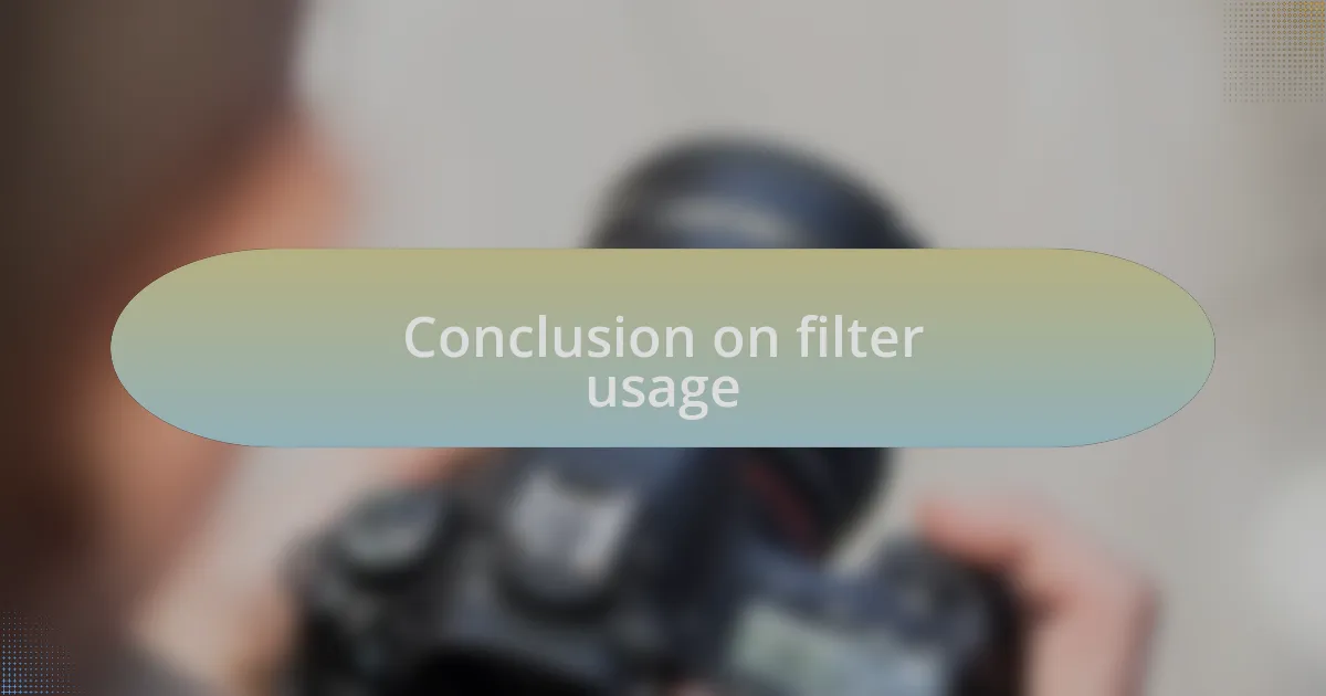 It’s fascinating to reflect on how filters not only enhance technical aspects but also shape our creative vision. I recall a particular session when I applied a warm sunset filter while capturing a bustling cityscape. The glow it added evoked a sense of nostalgia, transporting me back to cherished memories of my own travels. Have you felt that emotional connection to your subject because of filter usage? These moments reinforce the notion that filters are not just tools; they can be gateways to deeper artistic expression.
